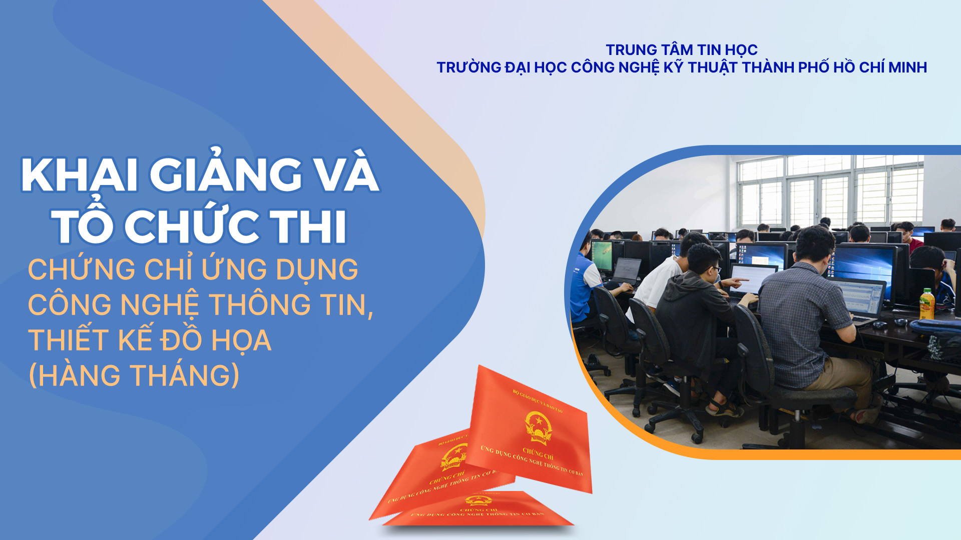 Chứng chỉ ứng dụng Công nghệ thông tin là chứng chỉ quốc gia, chứng nhận kỹ năng sử dụng CNTT theo Chuẩn do Bộ Thông tin và Truyền thông quy định, được ban hành tại Thông tư 17/2016/TTLT-BGDĐT-BTTTT. Trường ĐH Công nghệ Kỹ thuật Tp. Hồ Chí Minh (đại diện là Trung tâm tin học) là một trong số đơn vị được phép tổ chức thi và cấp chứng chỉ Ứng dụng CNTT (cơ bản và nâng cao).